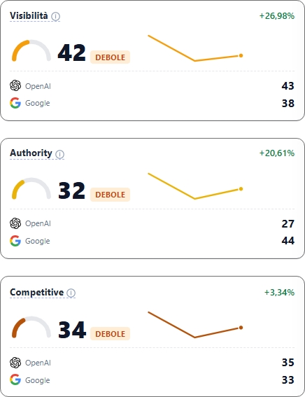 | Share of AI Voice | Percentuale di risposte in cui il brand compare | Misura la visibilità complessiva nelle risposte AI |